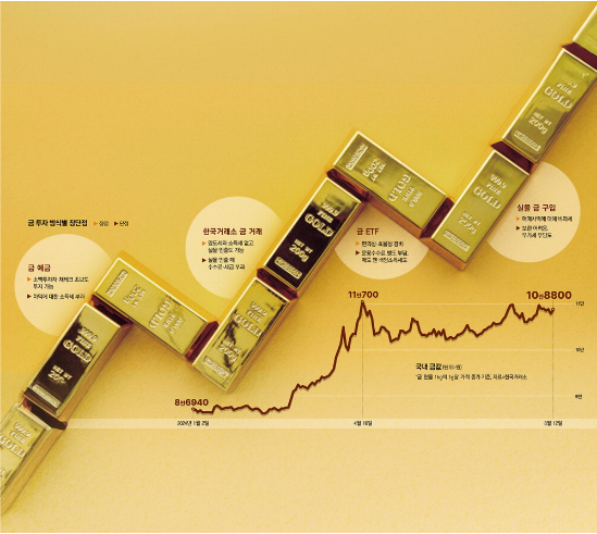 - 금 가격에 연동된 ETF나 펀드에 투자하는 방법입니다.